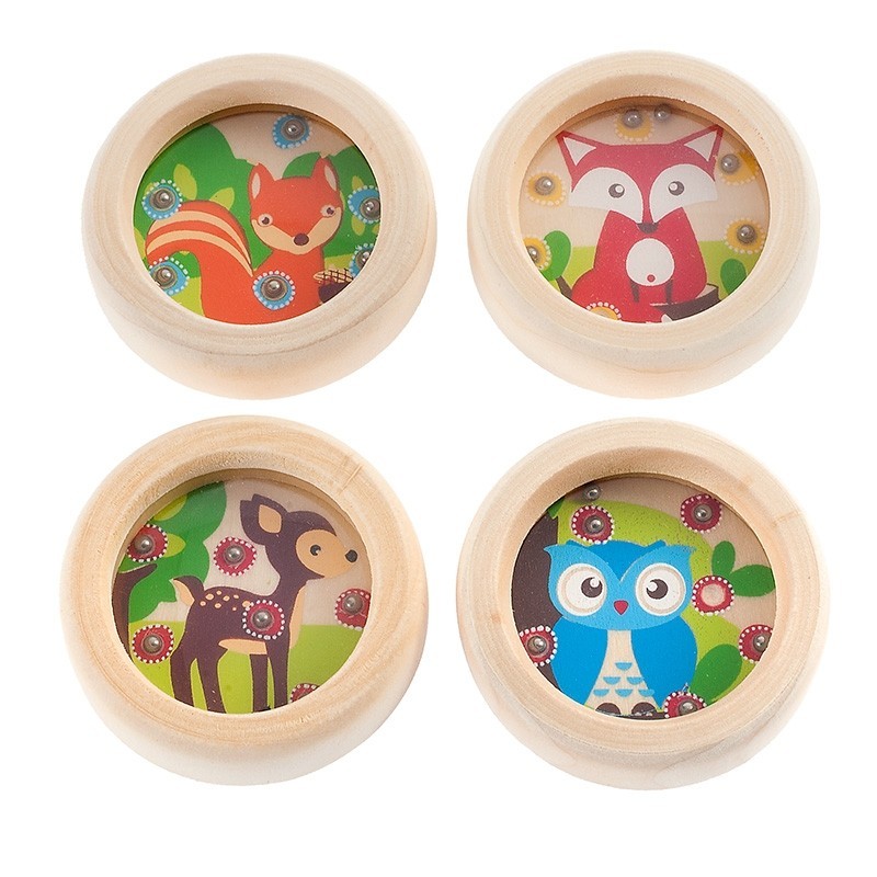 Ξύλινο παιδικό natural στρογγυλό κουτάκι, παιχνίδι με μπιλίτσες με πολύχρωμες παραστάσεις ζωάκια μέσα, ιδανικό και ως παιχνίδι ταξιδίου.Ο κωδικός περιλαμβάνει 4 σχέδια(αλεπού,σκίουρο,ελαφάκι,κουκουβάγια).Για ηλικίες άνω των 3 ετών