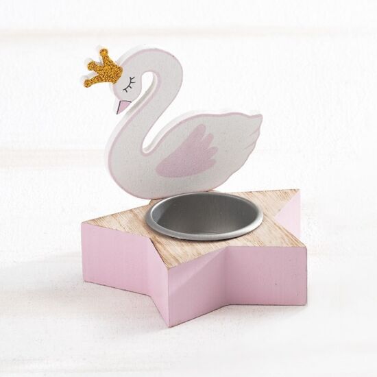 Ξύλινο ρεσώ σε σχήμα αστέρι σε ροζ-natural απόχρωση και διακοσμημένο με ξύλινο λευκό-ροζ κύκνο με χρυσή κορώνα. Κατάλληλο και για κατασκευές
