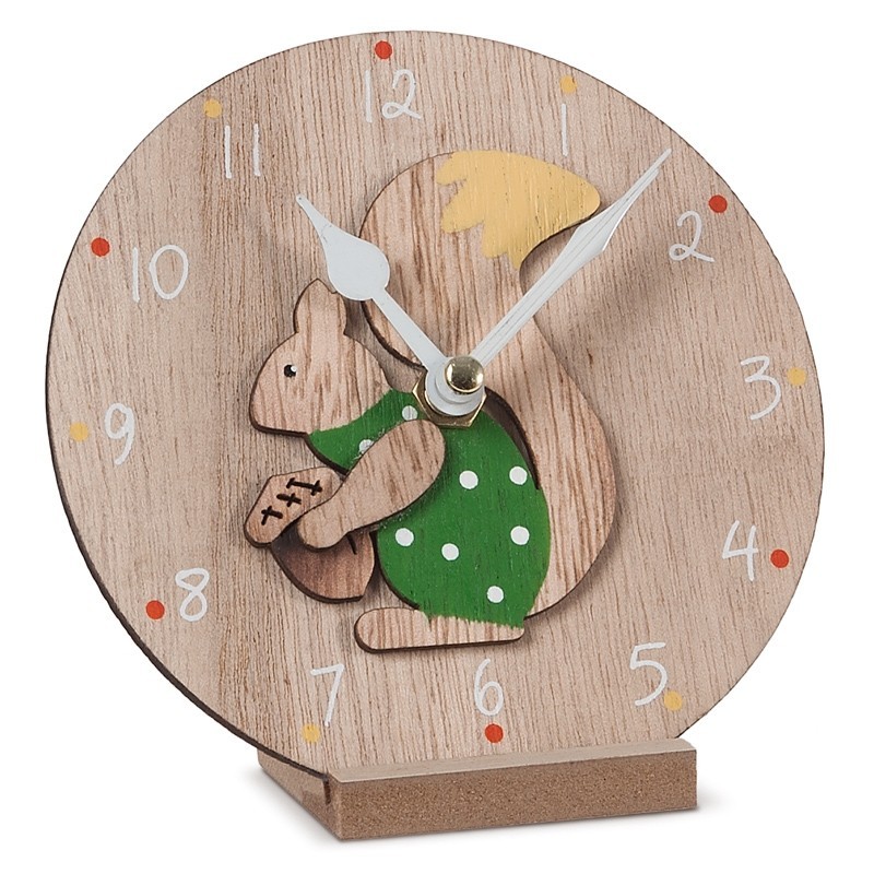 Ξύλινο διακοσμητικό ρολόι. Διακοσμημένο με πράσινο πουά σκίουρο.