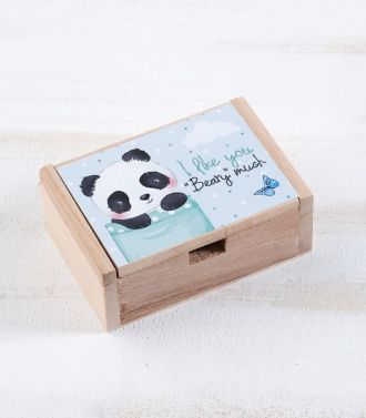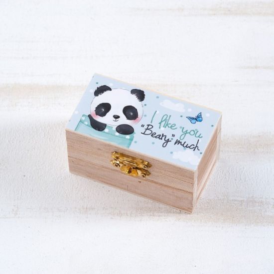 Ξύλινο natural σεντούκι με μεταλλικό κούμπωμα. Είναι διακοσμημένο με αυτοκόλλητο print Panda.