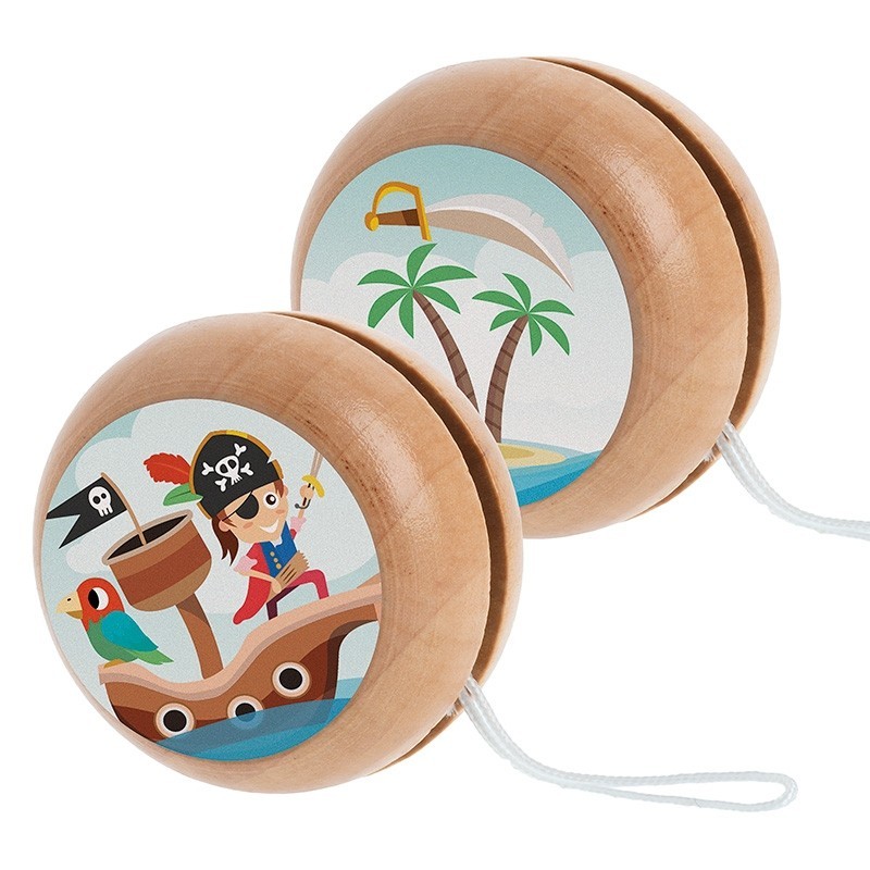 Ξύλινο natural γιο-γιο με σκοινάκι. Είναι διακοσμημένο με αυτοκόλλητο print πειρατης με διαφορετικό σχέδιο μπρος-πίσω.
