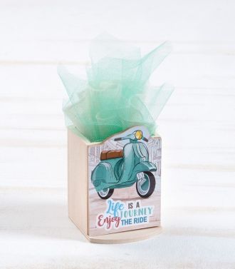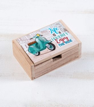 Ξύλινο natural γιο-γιο με σκοινάκι. Είναι διακοσμημένο με αυτοκόλλητο print βέσπα με διαφορετικό σχέδιο μπρος-πίσω.