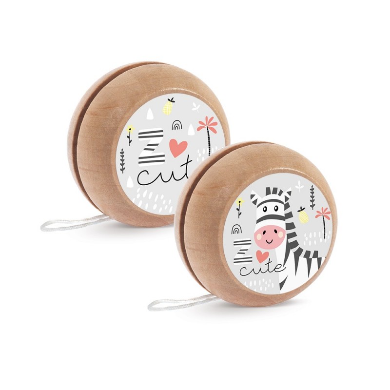 Ξύλινο natural γιο-γιο με σκοινάκι. Είναι διακοσμημένο με αυτοκόλλητο print ζεβρα με διαφορετικό σχέδιο μπρος-πίσω.