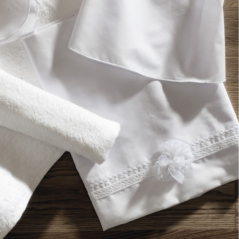 Σετ λαδόπανα βάπτισης για κορίτσι τύπου vintage σε λευκό χρώμα. Στο σετ περιλαμβάνεται το λαδόπανο, τα εσώρουχα,η πετσέτα η μεγάλη και η μικρή των χεριών