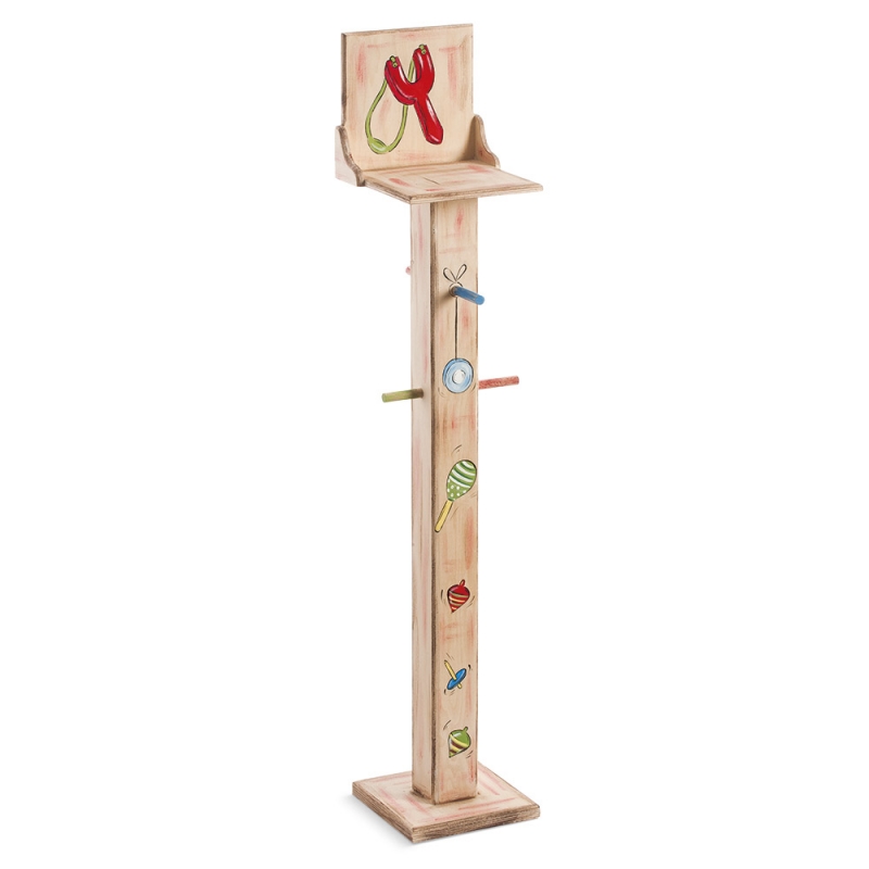 Ξύλινος natural κηροστάτης-κρεμάστρα,ζωγραφισμένος στο χέρι με διάφορα πολύχρωμα παιδικά παιχνίδια και με σβησίματα καφέ-κόοκινα.Στην τιμή περιλαμβάνεται και το κερί για την εκκλησία.