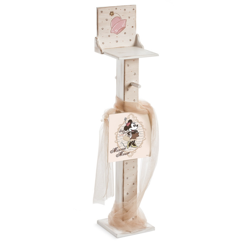 Disney ξύλινος λευκός κηροστάτης-κρεμάστρα ζωγραφισμένος στο χέρι με σβησίματα καφέ-ροζ διακοσμημένος με ξύλινο καδράκι που απεικονίζει τη minnie σε queen style και περιβάλλεται από τούλι σομόν.Στην τιμή περιλαμβάνεται και το κερί για την εκκλησία.