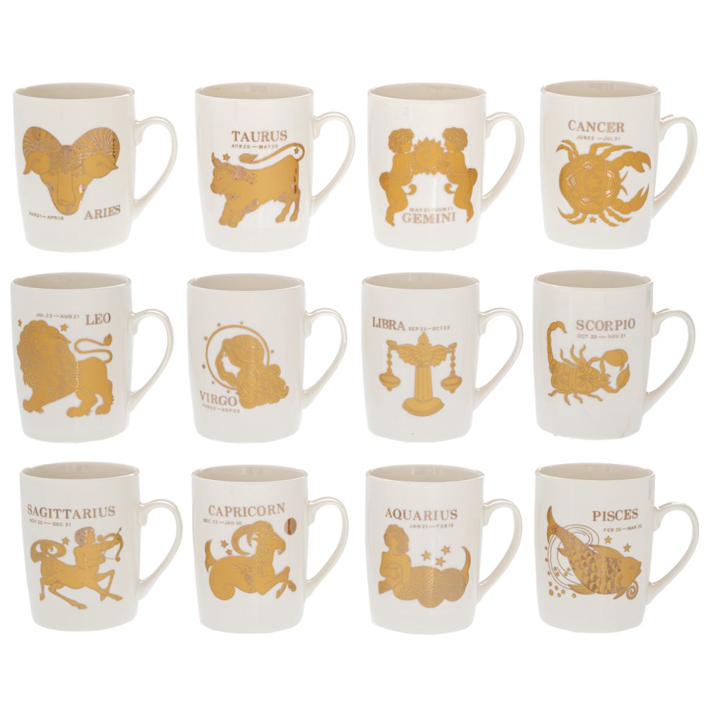 ΛΕΥΚΗ ΚΕΡΑΜΙΚΗ ΚΟΥΠΑ ΜΕ 12 ΧΡΥΣΑ ΖΩΔΙΑ 9X11EK