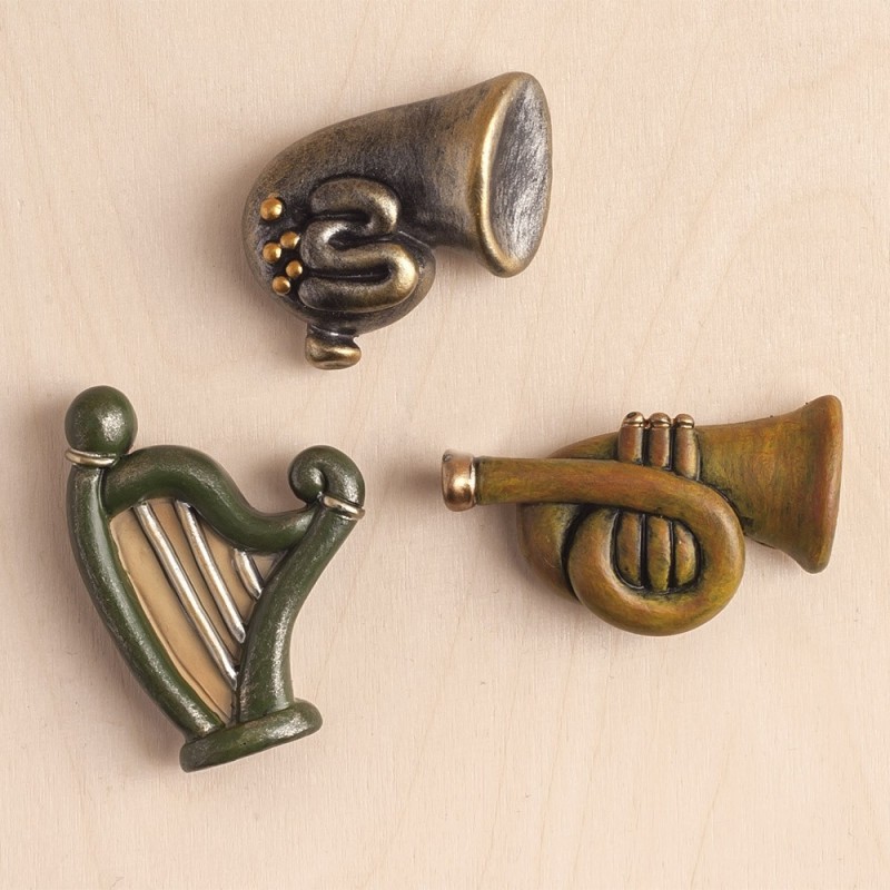 Vintage πολυεστερικά μαγνητάκια μουσικά όργανα. Ο κωδικός περιλαμβάνει 3 σχέδια σε χρώματα πράσινο, κίτρινο και καφέ