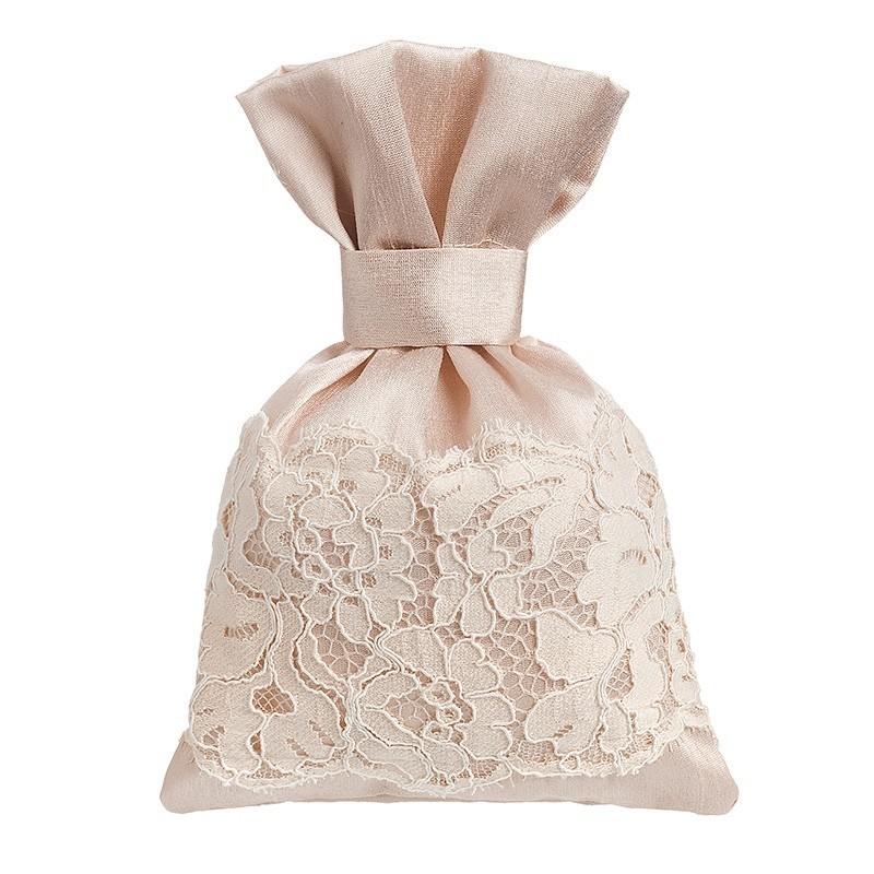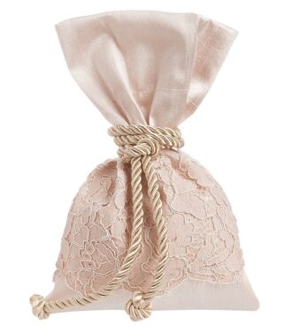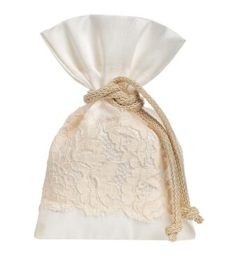 Πουγκί σαντούκ με λαιμό σε χρώμα της μόκας, ντυμένο με ivory δαντέλα. Διαφορετικές διαστάσεις κατόπιν συνεννόησης