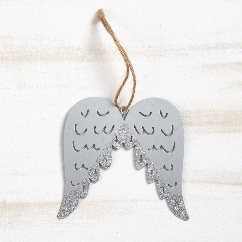 Μεταλλικά κρεμαστά ασημί φτερά αγγέλου με glitter λεπτομέρειες