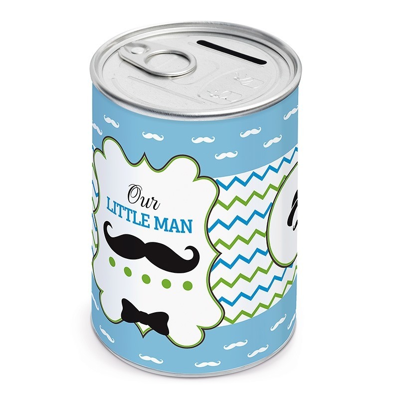 Μεταλλική κονσέρβα-κουμπαράς print με σχέδιο little man σε σιέλ αποχρώσεις