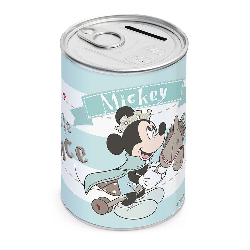 Μεταλλική κονσέρβα-κουμπαράς print με σχέδιο Mickey little prince σε γκρι-σιέλ αποχρώσεις