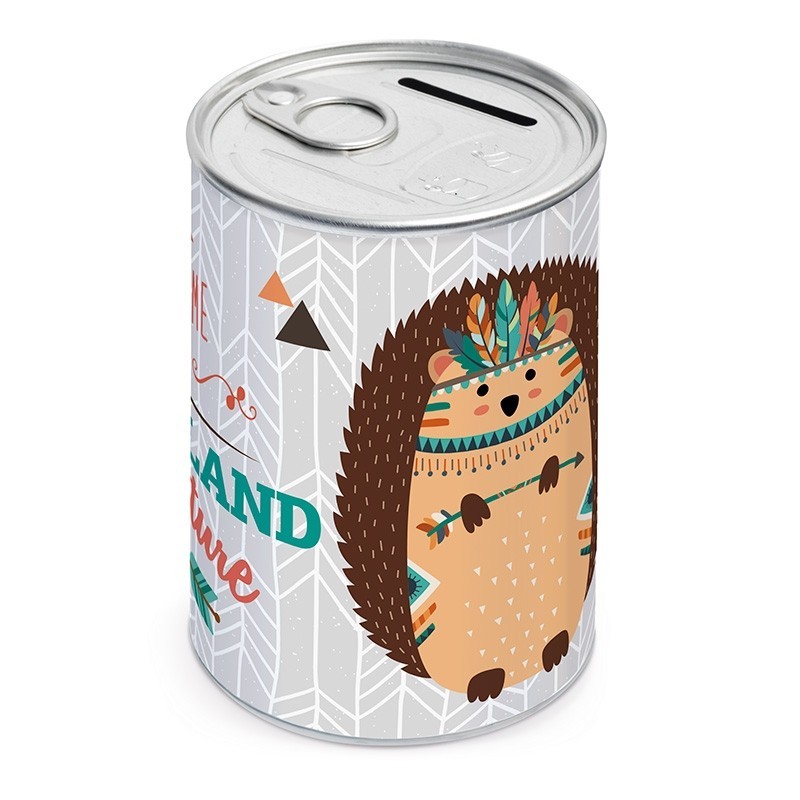 Μεταλλική κονσέρβα-κουμπαράς print με σχέδιο σκαντζόχοιρο
