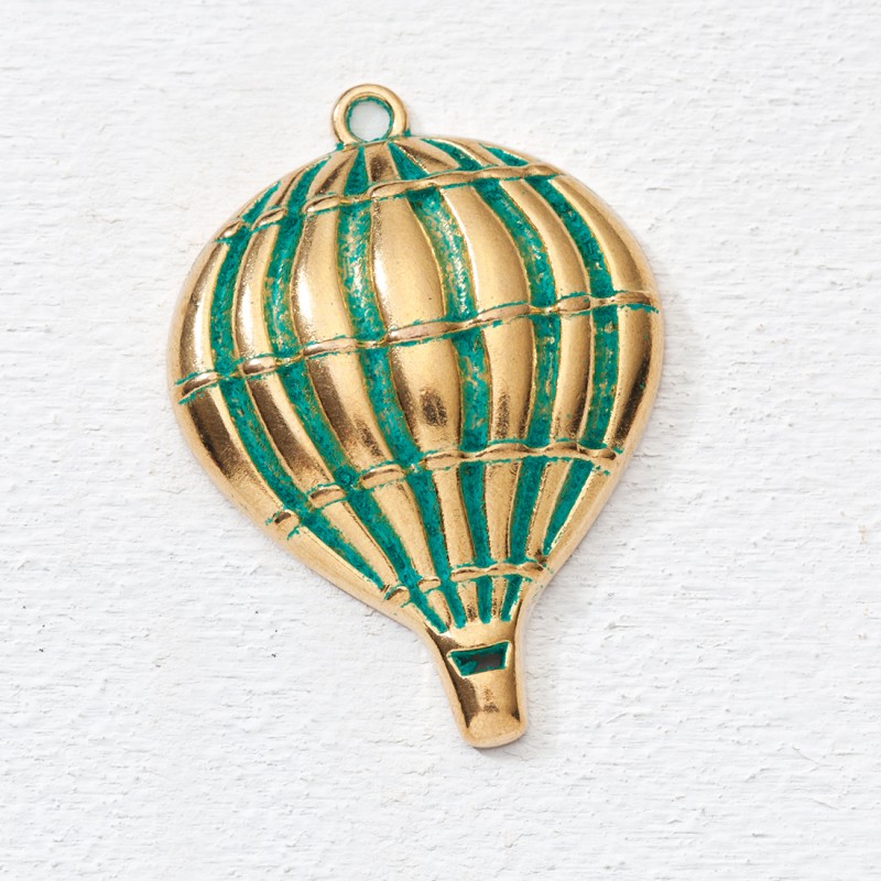 Μεταλλικό κρεμαστό διακοσμητικό αερόστατο σε χρυσό χρώμα με βεραμάν λεπτομέρειες. Κατάλληλο για διακοσμήσεις και χειροποίητες κατασκευές. Η συσκευασία περιέχει 10 τεμάχια.