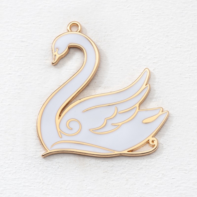 Μεταλλικός κρεμαστός διακοσμητικός κύκνος σε χρυσό χρώμα με σμάλτο λευκό. Κατάλληλο για διακοσμήσεις και χειροποίητες κατασκευές. Η συσκευασία περιέχει 10 τεμάχια.