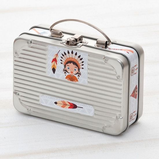 Μεταλλικό βαλιτσάκι σε ασημί χρώμα με αυτοκόλλητο ινδιάνος.