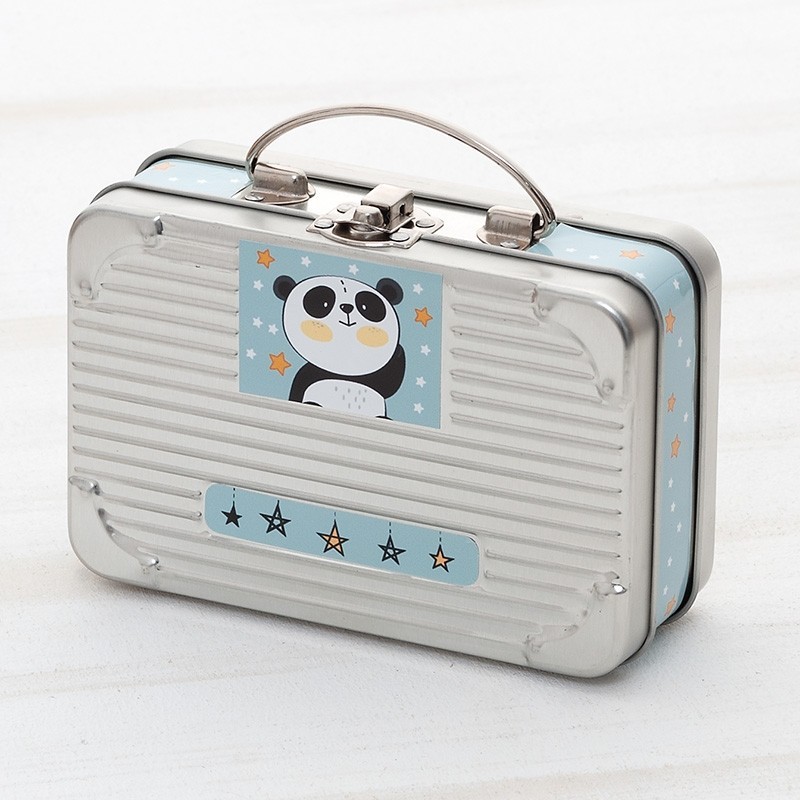Μεταλλικό βαλιτσάκι σε ασημί χρώμα με αυτοκόλλητο panda.