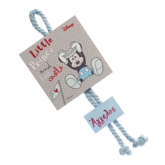 Disney ξύλινο κρεμαστό καδράκι με κορδόνι. Είναι διακοσμημένο με ξύλινη παράσταση print Mickey mouse Little prince in his castle σε σιέλ αποχρώσεις. Συνοδεύεται από ξύλινο μικρό ταμπελάκι όπου δίνεται η δυνατότητα να γραφτεί η ευχή σας (Ενθύμιο από την βάπτισή μου ή Σας ευχαριστώ ή Όνομα του παιδιού).