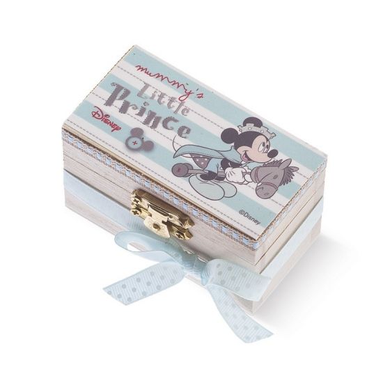 Disney ξύλινο natural σεντούκι με μεταλλικό κούμπωμα. Είναι διακοσμημένο με αυτοκόλλητο print Mickey mouse Little prince σε σιέλ αποχρώσεις