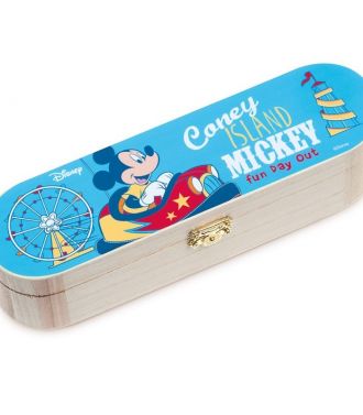 Disney ξύλινο natural κασετίνα με μεταλλικό κούμπωμα. Είναι διακοσμημένη με αυτοκόλλητο print Mickey mouse Little traveller σε αποχρώσεις του σιέλ