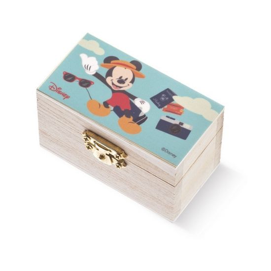 Disney ξύλινο natural σεντούκι με μεταλλικό κούμπωμα. Είναι διακοσμημένο με αυτοκόλλητο print Mickey mouse Little traveller σε αποχρώσεις του σιέλ .