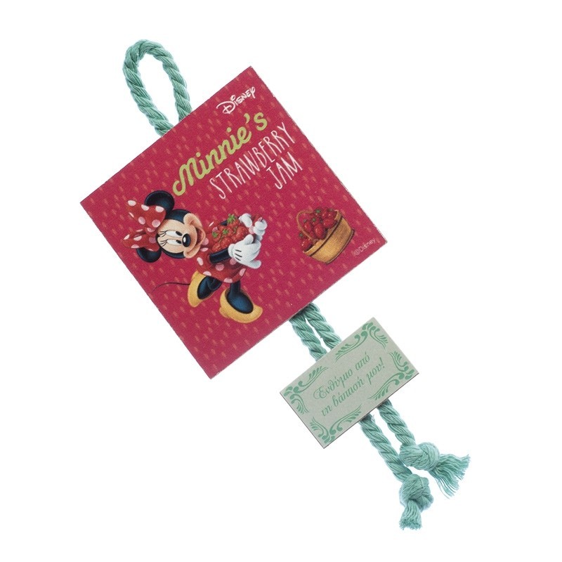 Disney ξύλινο κρεμαστό καδράκι με κορδόνι. Είναι διακοσμημένο με ξύλινη παράσταση print Minnie mouse Strawberry jam σε κόκκινες αποχρώσεις. Συνοδεύεται από ξύλινο μικρό ταμπελάκι όπου δίνεται η δυνατότητα να γραφτεί η ευχή σας (Ενθύμιο από την βάπτισή μου ή Σας ευχαριστώ ή Όνομα του παιδιού).
