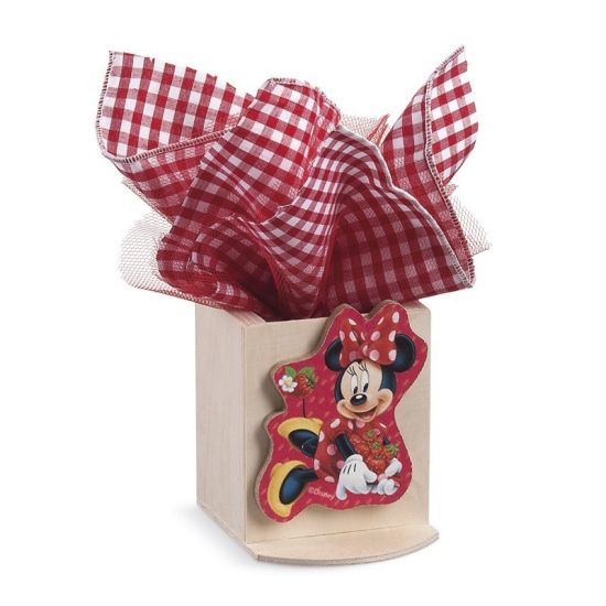 Disney ξύλινη natural μολυβοθήκη. Είναι διακοσμημένη με ξύλινη παράσταση print Minnie mouse Strawberry jam σε κόκκινες αποχρώσεις.