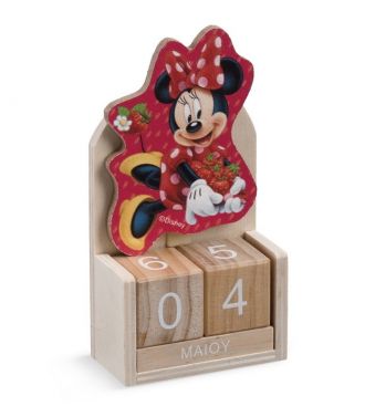 Disney ξύλινο natural ημερολόγιο με δυνατότητα αλλαγής της ημερομηνίας προσαρμόζοντας τα κυβάκια. Είναι διακοσμημένο με ξύλινη παράσταση print Minnie mouse Making wishes σε ροζ αποχρώσεις