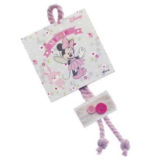 Disney ξύλινο κρεμαστό καδράκι με κορδόνι. Είναι διακοσμημένο με ξύλινη παράσταση print Minnie mouse Fairyσε ροζ αποχρώσεις. Συνοδεύεται από ξύλινο μικρό ταμπελάκι όπου δίνεται η δυνατότητα να γραφτεί η ευχή σας (Ενθύμιο από την βάπτισή μου ή Σας ευχαριστώ ή Όνομα του παιδιού)