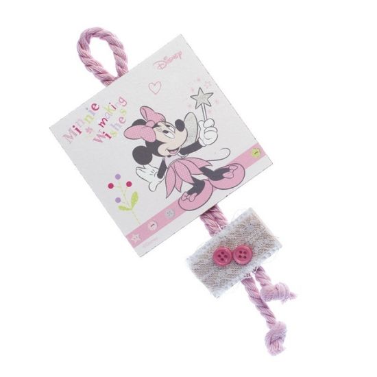 Disney ξύλινο κρεμαστό καδράκι με κορδόνι. Είναι διακοσμημένο με ξύλινη παράσταση print Minnie mouse Making wishes σε ροζ αποχρώσεις. Συνοδεύεται από ξύλινο μικρό ταμπελάκι όπου δίνεται η δυνατότητα να γραφτεί η ευχή σας (Ενθύμιο από την βάπτισή μου ή Σας ευχαριστώ ή Όνομα του παιδιού).