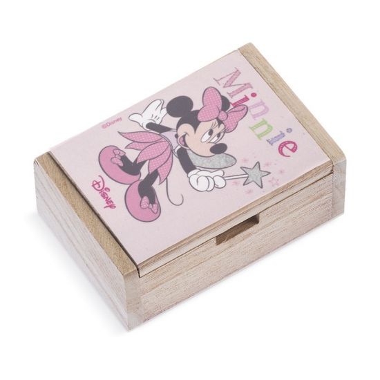 Disney ξύλινο natural παραλληλόγραμο κουτί. Είναι διακοσμημένο με αυτοκόλλητο print Minnie mouse Making wishes σε ροζ αποχρώσεις .