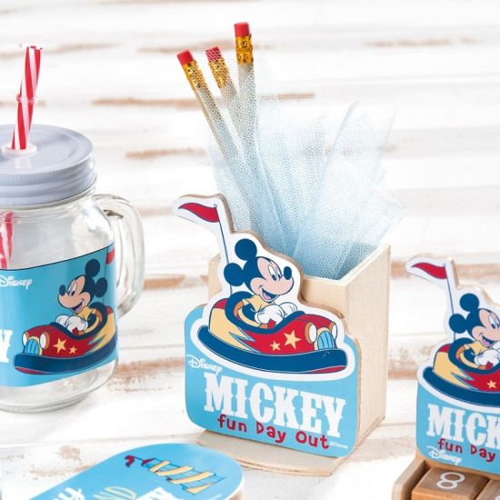 Disney ξύλινη natural μολυβοθήκη. Είναι διακοσμημένη με ξύλινη παράσταση print Mickey Fun Day σε τιρκουάζ-κόκκινες αποχρώσεις.