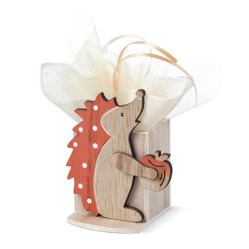 Ξύλινη μολυβοθήκη σε natural χρώμα. Διακοσμημένο με ξύλινη παράσταση σκαντζόχοιρος σε πορτοκαλί πουά χρώμα.