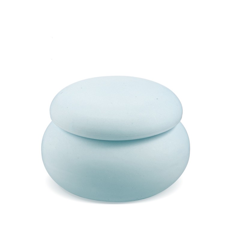 Γύψινη στρογγυλή μπιζουτιέρα.Η μπιζουτιέρα σχηματίζει την εικόνα ενός λαχταριστού macaron σε χρώμα σιελ.
