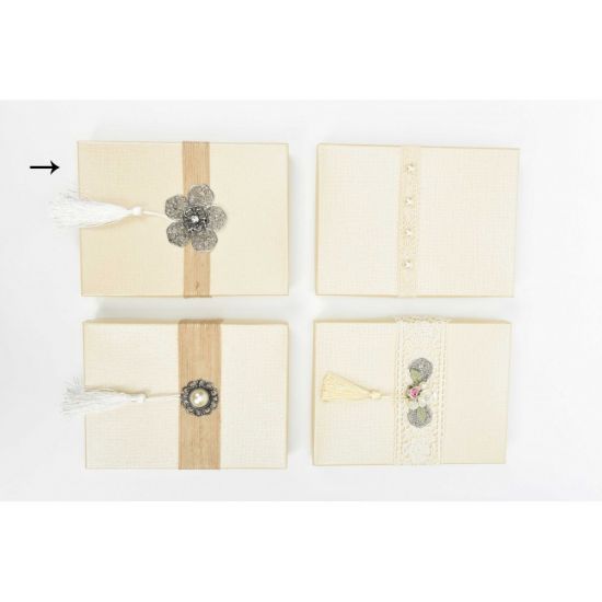 Κουτί μπομπονιέρας ιβουάρ με λινάτσα και μεταλλικό μοτίφ