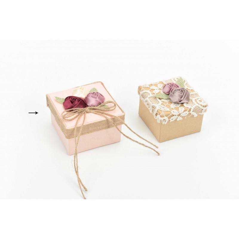 Μπομπονιέρα Κουτάκι με Ροζ Λουλούδια