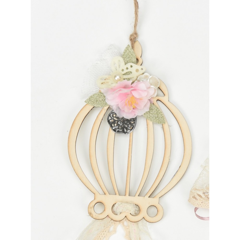Μπομπονιέρα ξύλινη αερόστατο με ροζ λουλούδι