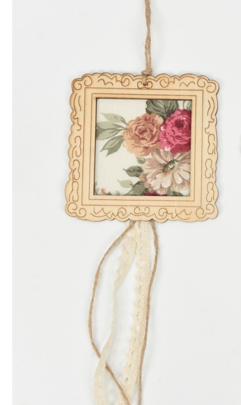 Μπομπονιέρα ξύλινη κορνίζα με ύφασμα λουλούδια