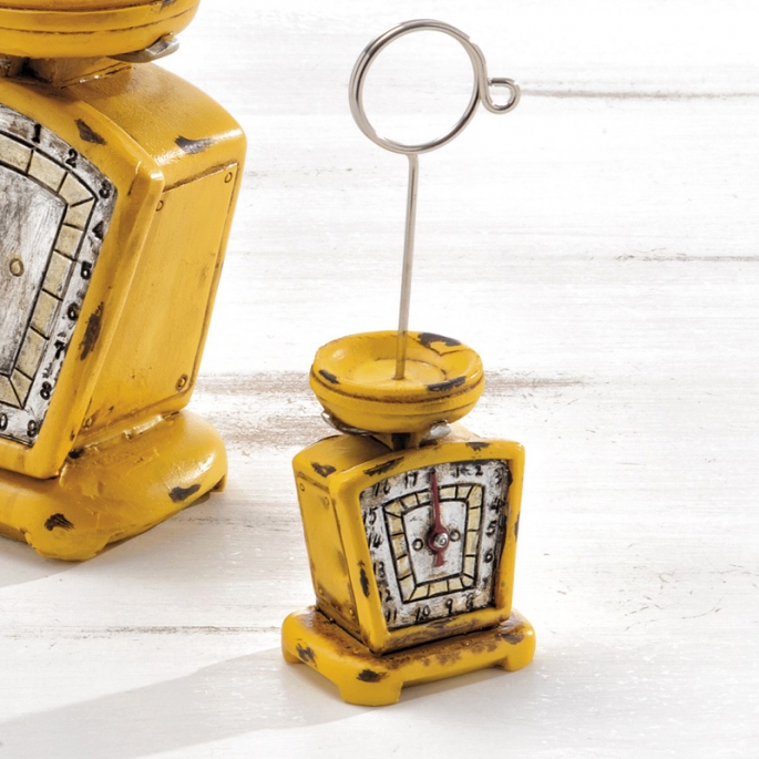 Vintage πολυεστερικός χαρτοστάτης σε σχήμα ζυγαριάς και κίτρινο χρώμα.