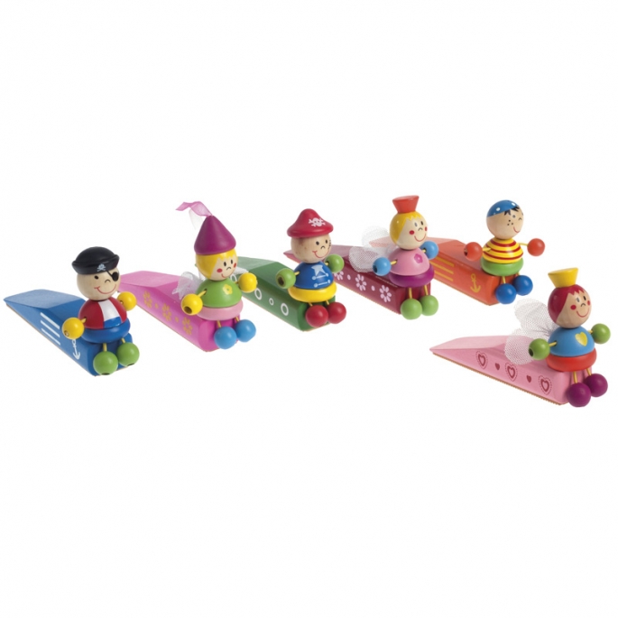 Door stop από PVC για παιδικό δωμάτιο. Το μπροστινό μέρος διακοσμείται από ξύλινες φιγούρες που απεικονίζουν πειρατές και νεράϊδες. Ο κωδικός περιλαμβάνει 6 σχέδια.