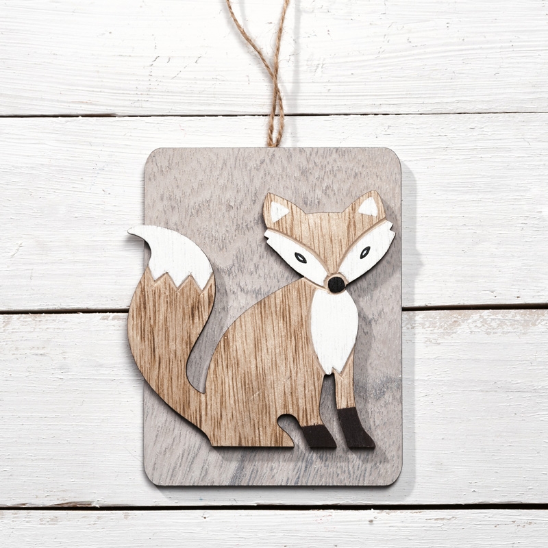 Ξύλινο κρεμαστό διακοσμητικό καδράκι σε natural απόχρωση. Διακοσμημένο με αλεπού σε καφέ χρώμα.