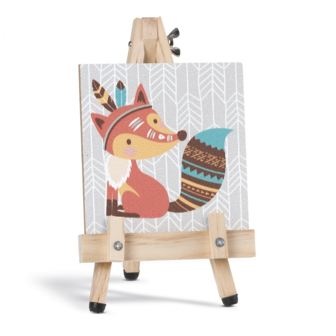 Ξύλινο καδράκι print σε καβαλέτο.Η παράσταση είναι αλεπουδίτσα σε ethnic χρωματισμούς.
