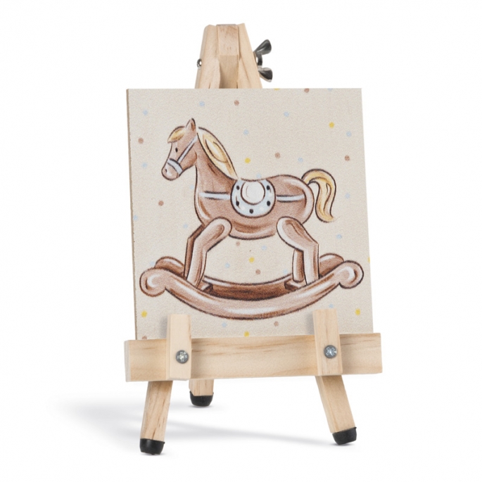 Ξύλινο καδράκι print σε καβαλέτο.Η παράσταση είναι αλογάκι