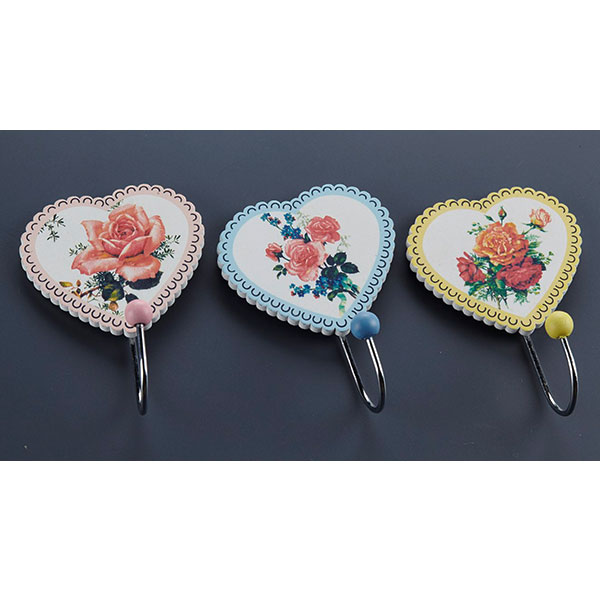 Ξύλινη κρεμαστρούλα φλοράλ σε σχήμα καρδιάς.