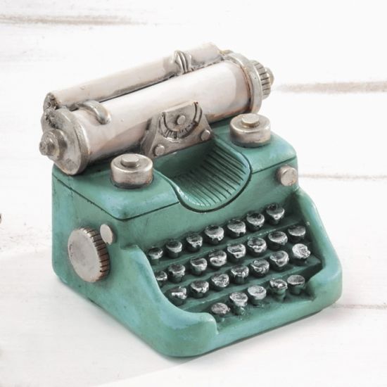 Vintage πολυεστερικός κουμπαράς σε σχήμα γραφόμηχανης και βεραμάν απόχρωση.