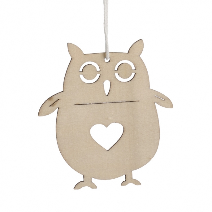 Ξύλινη κρεμαστή διακοσμητική κουκουβάγια σε natural χρώμα.