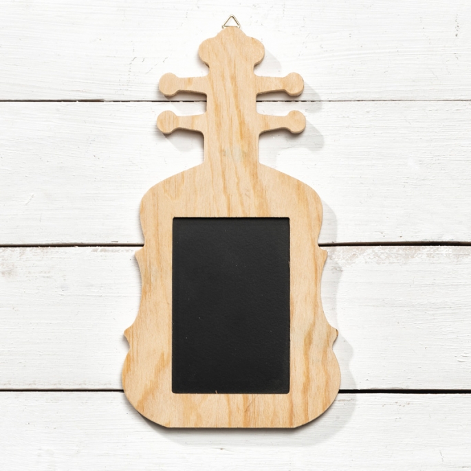 Ξύλινος κρεμαστός διακοσμητικός μαυροπίνακας σε σχήμα κιθάρας και natural χρώματος. Με άνοιγμα από την πίσω πλευρά και για τοποθέτηση φωτογραφίας.