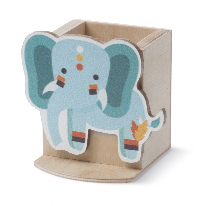 Ξύλινη μολυβοθήκη σε natural χρώμα. Διακοσμημένο με κοπτικό.Η παράσταση είναι ελέφαντας σε ethnic αποχρώσεις.
