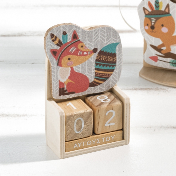 Μπομπονιέρα Βάπτισης Ξύλινο ημερολόγιο αλεπού ethnic