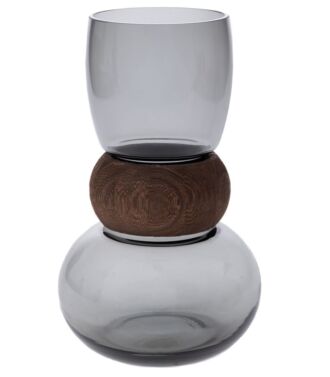 ΓΚΡΙ ΓΥΑΛΙΝΟ ΒΑΖΟ ΜΕ ΞΥΛΙΝΗ ΛΕΠΤΟΜΕΡΕΙΑ 16Χ26ΕΚ 25,40